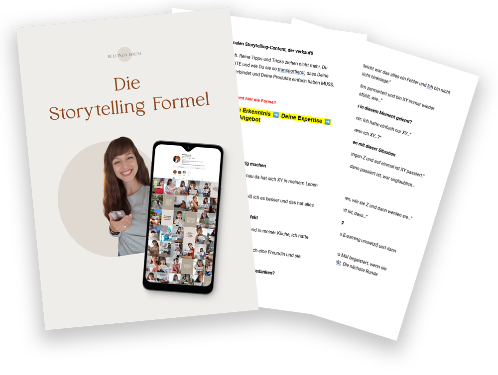 Ich liebe Storytelling und baue schon seit Jahren regelmäßig Posts ein, in denen ich von meinen Erfahrungen und Learnings erzähle – auf eine ganz bestimmte Art. Es sind diese Posts, die meine Follower:innen zu meinen Kund:innen machen und dafür sorgen, dass sie im Schnitt 3-5 Mal bei mir kaufen, weil sie eine Verbindung zu mir haben!